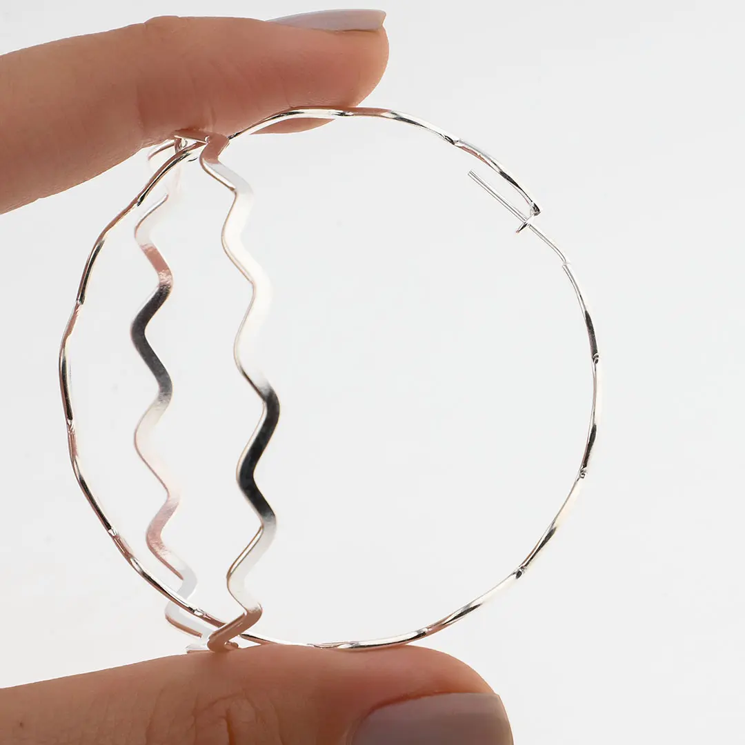Añade un toque de modernidad a tu estilo con estas deslumbrantes argollas. Su diseño contemporáneo y su acabado brillante aportan un aire de frescura a tu look. Luce estas argollas con confianza y deja que resalten tu belleza natural.